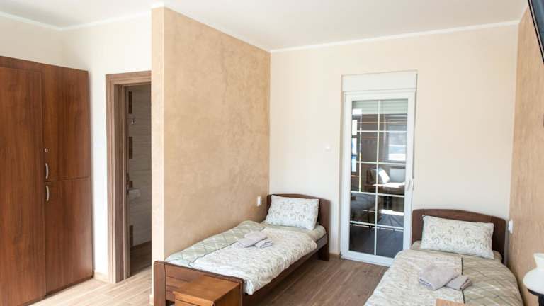 Jedes Zimmer in der Unterkunft Zlatni Klas ist mit einem Balkon, einem Kleiderschrank, einem Flachbild-TV und einem eigenen Badezimmer ausgestattet. Außerdem sind Bettwäsche und Handtücher vorhanden. Die Zimmer beinhalten zudem einen Sitzbereich.