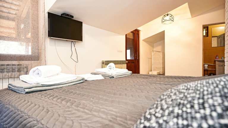Das klimatisierte Apartment im Zmaj Ognjeni Etno Concept verfügt über ein gemütliches Schlafzimmer und ein Badezimmer mit Dusche und Badewanne. Das Apartment ist mit einem Flachbild-Sat-TV ausgestattet und bietet einen komfortablen Rückzugsort nach einem ereignisreichen Tag.