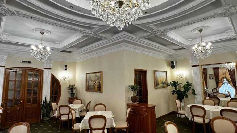 Im Restaurant des Zolotoy Fazan können die Gäste europäische Küche sowie ukrainische Gerichte genießen. Das Restaurant ist mit Möbeln im antiken Stil eingerichtet und bietet eine gemütliche Atmosphäre. Bei schönem Wetter können die Gäste ihre Mahlzeiten auch auf der Terrasse des Restaurants einnehmen.