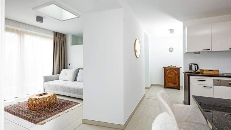 In den Suiten ist eine voll ausgestattete Küche vorhanden, die es den Gästen ermöglicht, ihre eigenen Mahlzeiten zuzubereiten. Die Küchen sind mit einem Kühlschrank, Geschirrspüler, Ofen, Kaffeemaschine und Wasserkocher ausgestattet.