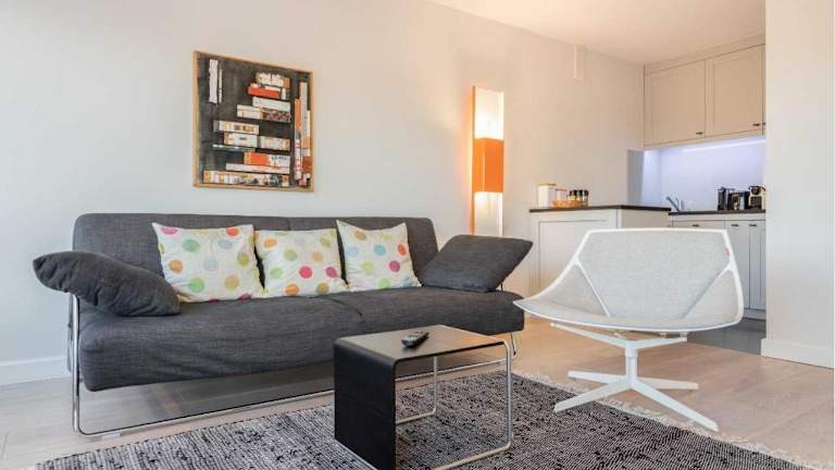 Die Ferienwohnung besteht aus einem Schlafzimmer und einer Küchenzeile, die mit einem Kühlschrank und einem Geschirrspüler ausgestattet ist. Das Badezimmer verfügt über eine Dusche und einen Haartrockner. Ein Flachbild-TV sorgt für Unterhaltung. In der gesamten Unterkunft gibt es WLAN.