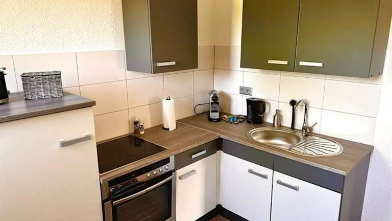 Die Ferienwohnung verfügt über 1 Schlafzimmer und ein Wohnzimmer. Die voll ausgestattete Küche beinhaltet einen Kühlschrank und einen Wasserkocher. Zudem gibt es 1 Badezimmer mit einer Dusche und einem Haartrockner. Handtücher und Bettwäsche werden bereitgestellt.
