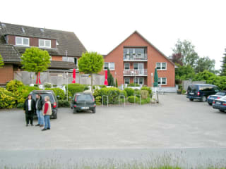 Auf dem Deich mit Elbblick, sowie eine Außenterrasse mit Blick auf die Elbe. Dierekt am Elberadweg