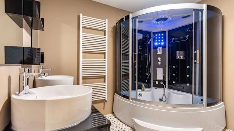 Das Ferienhaus umfasst insgesamt 4 Schlafzimmer und 3 Badezimmer, die jeweils mit einer Dusche und kostenlosen Pflegeprodukten ausgestattet sind. Satelliten-TV ist ebenfalls vorhanden.
