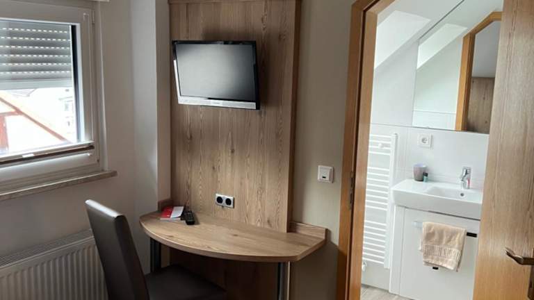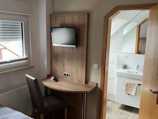 Die Zimmer in der Unterkunft Zum Wispertal sind mit einem Schreibtisch, einem Flachbild-TV, einem eigenen Badezimmer, Bettwäsche und Handtüchern ausgestattet. Jede Wohneinheit verfügt außerdem über einen Kleiderschrank.