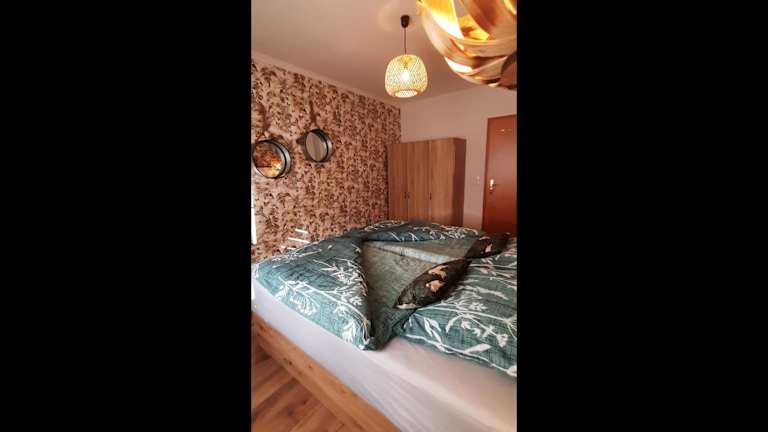 Die Ferienwohnung besteht aus einem Schlafzimmer, einem Wohnzimmer und einer voll ausgestatteten Küche, die mit einem Kühlschrank sowie einer Kaffeemaschine ausgestattet ist. Des Weiteren verfügt sie über ein Badezimmer, das mit einer Dusche und einem Haartrockner ausgestattet ist. Handtücher und Bettwäsche werden bereitgestellt.