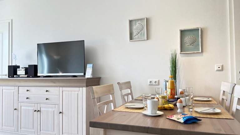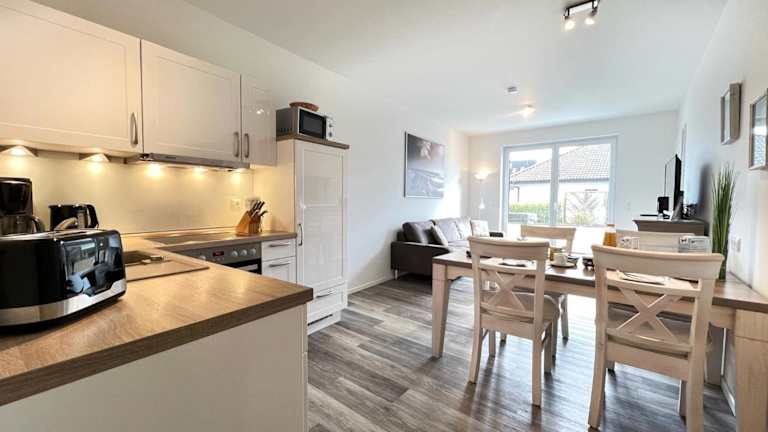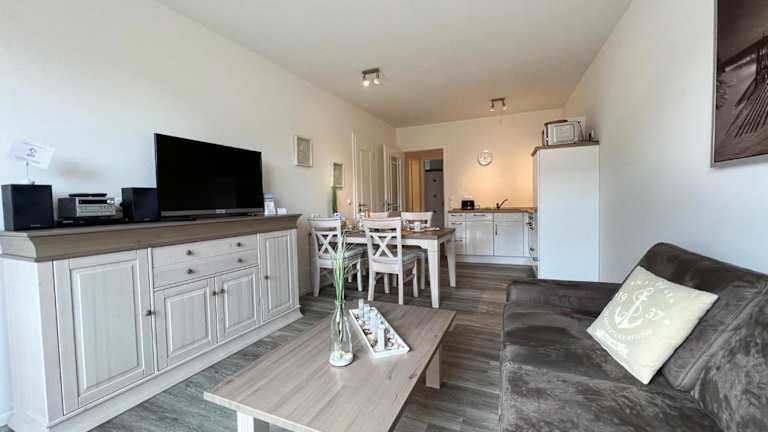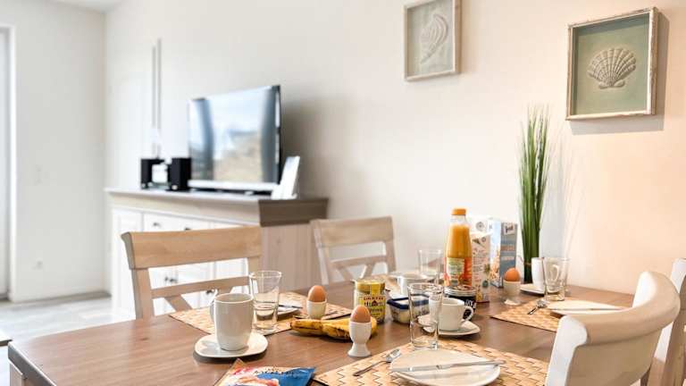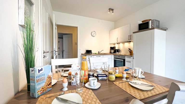 Das Appartement verfügt über zwei Schlafzimmer sowie eine gut ausgestattete Küchenzeile, die mit einem Kühlschrank, einem Geschirrspüler und einer Kaffeemaschine ausgestattet ist. Handtücher und Bettwäsche werden bereitgestellt.