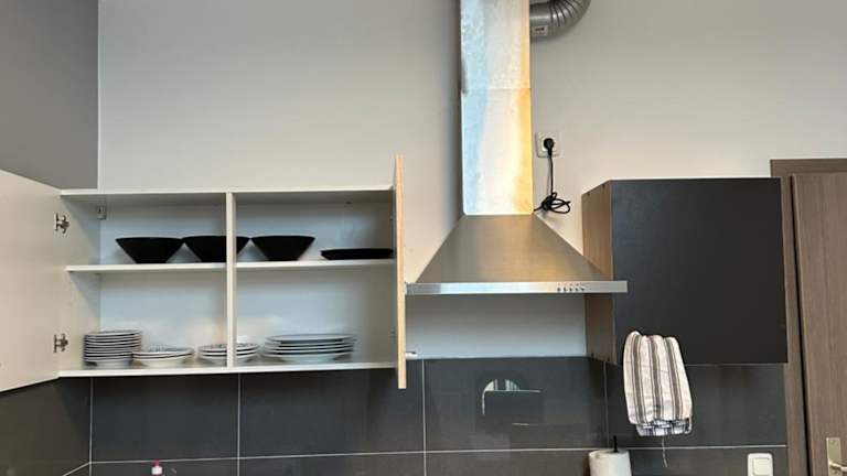Die Ferienwohnung ist mit einer voll ausgestatteten Küche versehen, zu der ein Kühlschrank, eine Mikrowelle, eine Herdplatte und ein Wasserkocher gehören.