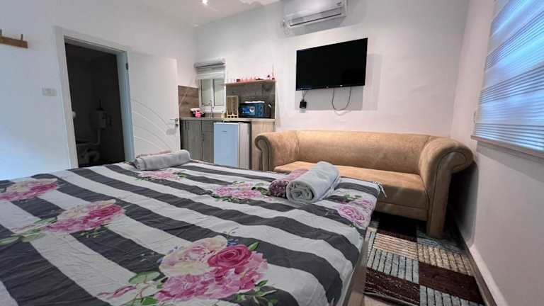 Das Hotel גבעת האלון bietet eine komfortable Unterkunft mit einer Küchenzeile, die mit den notwendigen Einrichtungen ausgestattet ist. Die Unterkunft verfügt über ein Wohnzimmer mit einem Flachbild-TV, Klimaanlage und zwei Schlafzimmern. Die Gäste können auch den Balkon nutzen, um die frische Luft und die Aussicht zu genießen.