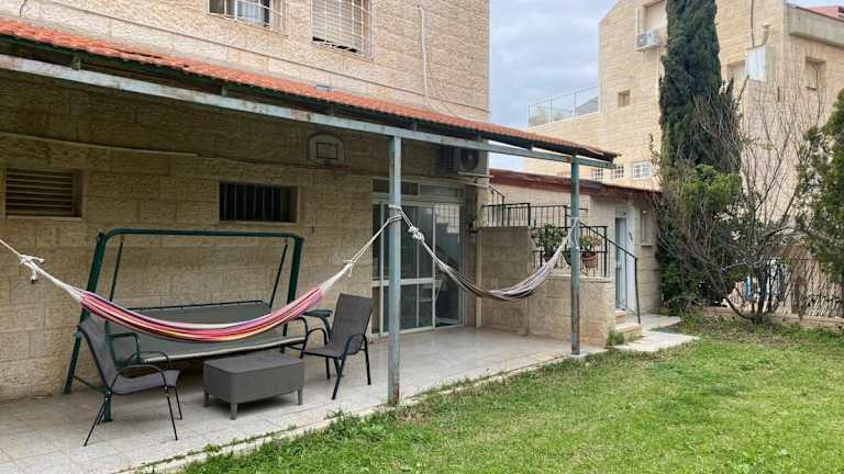 Das Garden Apartment befindet sich in Ma'ale Adumim, einer Region in der Nähe von Jerusalem. Die Umgebung bietet eine ruhige und entspannte Atmosphäre, perfekt zum Entspannen und Erkunden der Natur. In der Nähe des Apartments gibt es einen Garten, der ideal zum Verweilen und Genießen der frischen Luft ist. Die Lage ist auch günstig, um die umliegenden Städte und Sehenswürdigkeiten wie Qiryat 'Anavim, Jerusalem und Ein Gedi zu besuchen. Der Flughafen Ben Gurion ist ebenfalls gut erreichbar, so dass die Anreise zum Apartment bequem ist.
