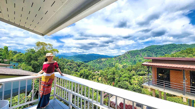 Die Zimmer im Hotel ดอยตุง สันติโฮมสเตย์ sind gemütlich eingerichtet und bieten kostenfreies WLAN sowie einen Balkon mit Bergblick. Die Unterkunft verfügt auch über kostenfreie Parkplätze für die Gäste.