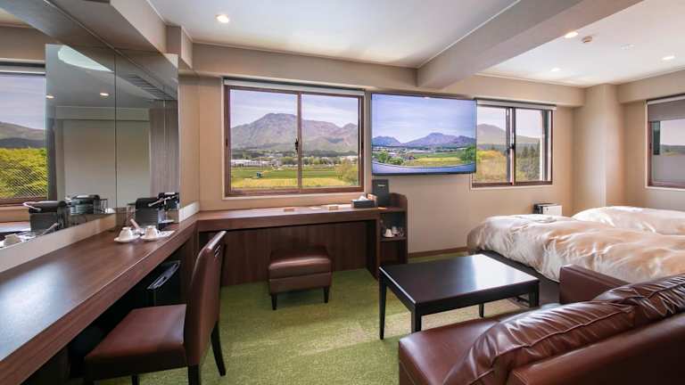 Die Unterkunft befindet sich in Aso, 36 km vom Stadion Egao Kenko Kumamoto entfernt. In der näheren Umgebung liegen der Vulkan Aso in 7,5 km, Suizenji-Park und die frühere Hosokawa Residenz (Gyobutei), jeweils 45 km entfernt. Die Burg Kumamoto ist ebenfalls 45 km von der Unterkunft entfernt. Der nächstgelegene Flughafen ist der Flughafen Kumamoto, 30 km von der Unterkunft entfernt.