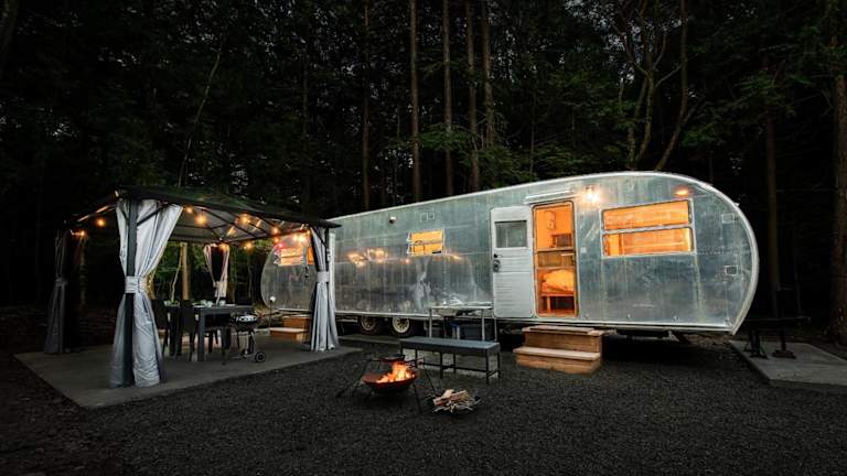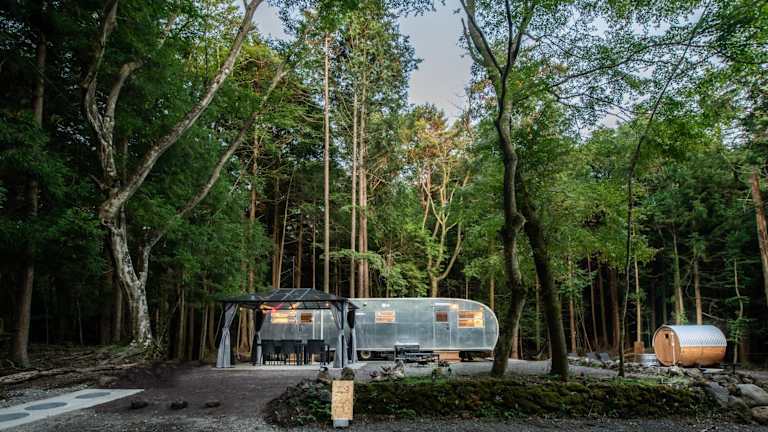 本栖ベース~ヴィンテージトレーラーとバレルサウナ’1日1組限定’の貸切別荘~ bietet eine exklusive Unterkunftsoption, bei der die gesamte Villa für 1 Gruppe reserviert wird. Die Unterkunft vereint Vintage-Elemente mit modernen Annehmlichkeiten, einschließlich eines Gartens und privater Parkmöglichkeiten.