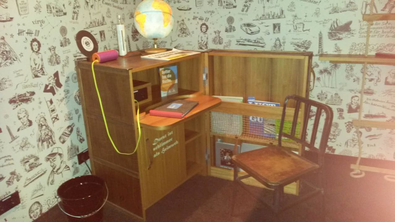 Die Schreibecke mit Kühlschrank