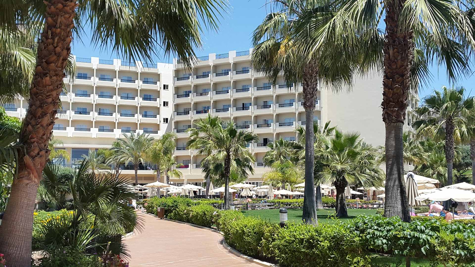 Gartenanlage mit Blick auf Hotelgebäude