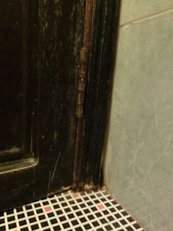 Morsche und abgeblätterte Tür im Bad