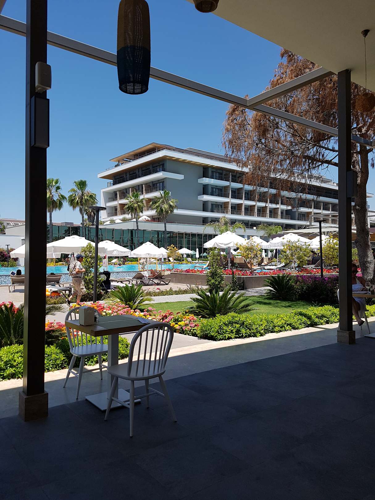 Blick vom Beachclub zur Poolanlage