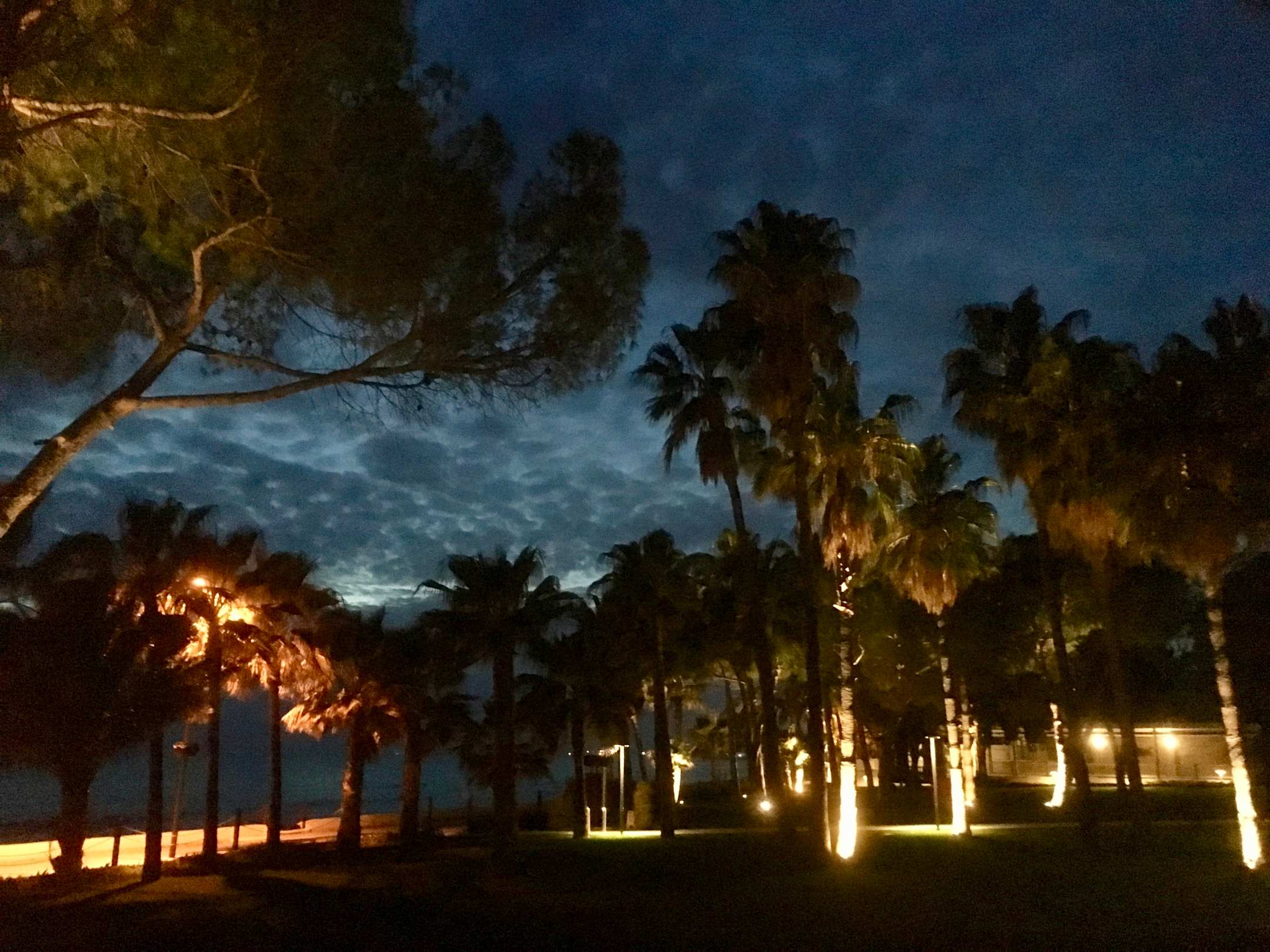 Gartenanlage am Abend