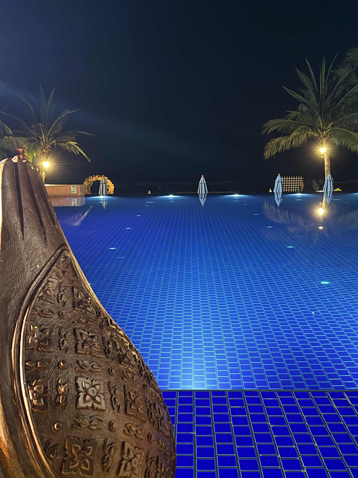 Blick über den Pool zum Strand