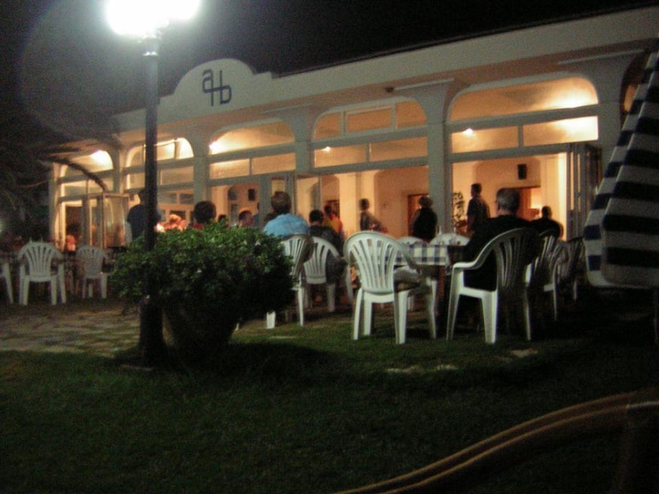 Abendstimmung beim griechischen Abend, Blick in Richtung Hotelbar / "Wintergarten"