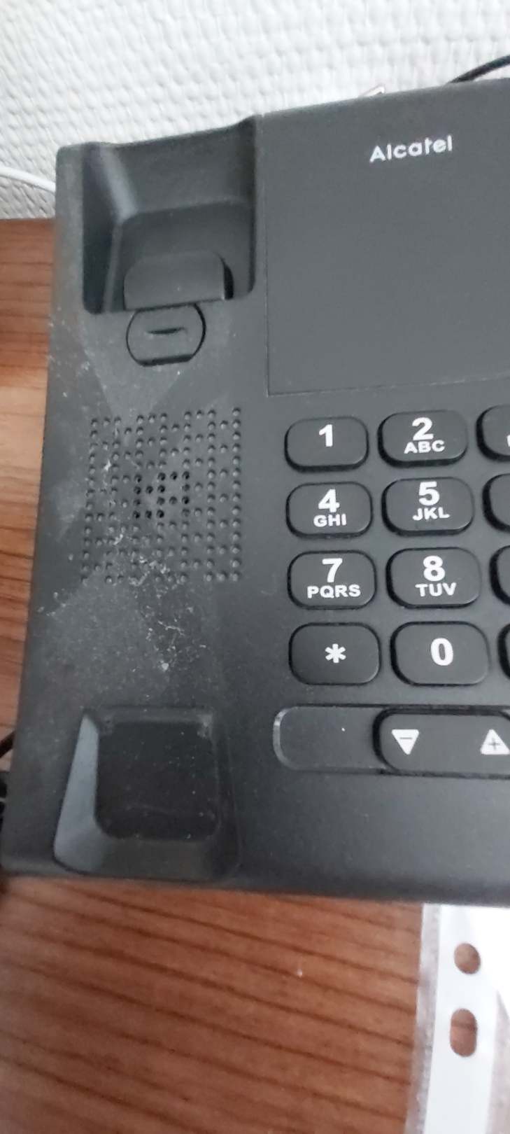 ZimmerAlte verkrustete Staubschicht unter dem Zimmertelefon.