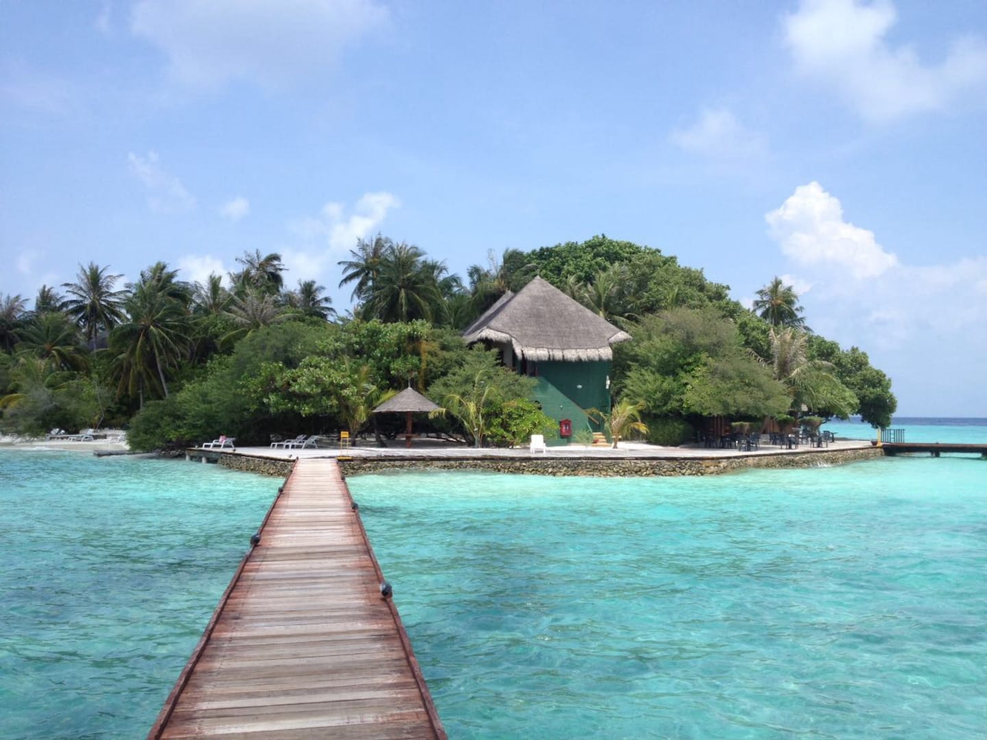 Steg vom Wasserbungalow zur Insel