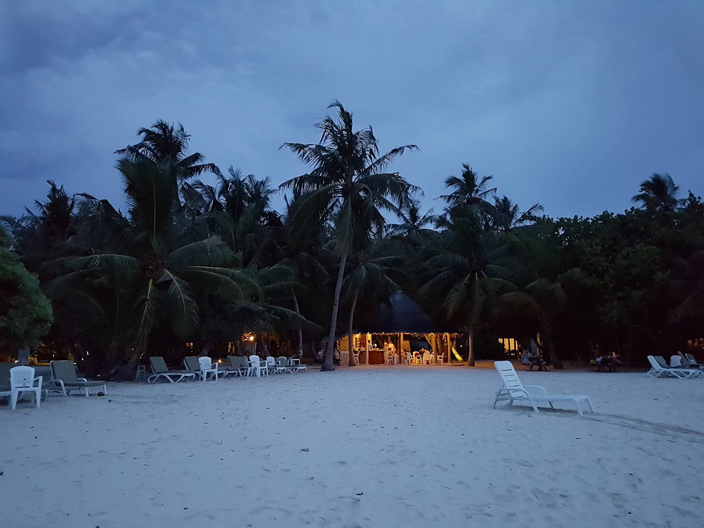 Die Strandbar am Nordende kurz nach Sonnenuntergang