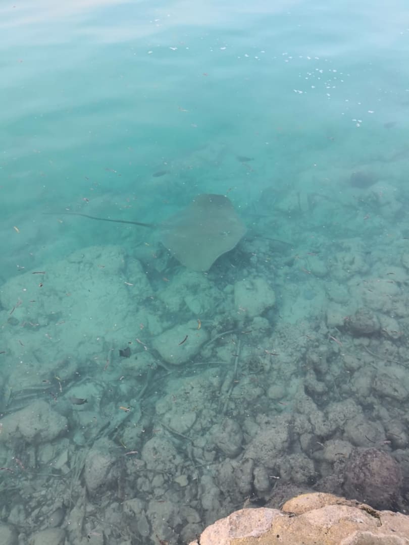Rochen und kleine Haie tummeln sich um die Insel