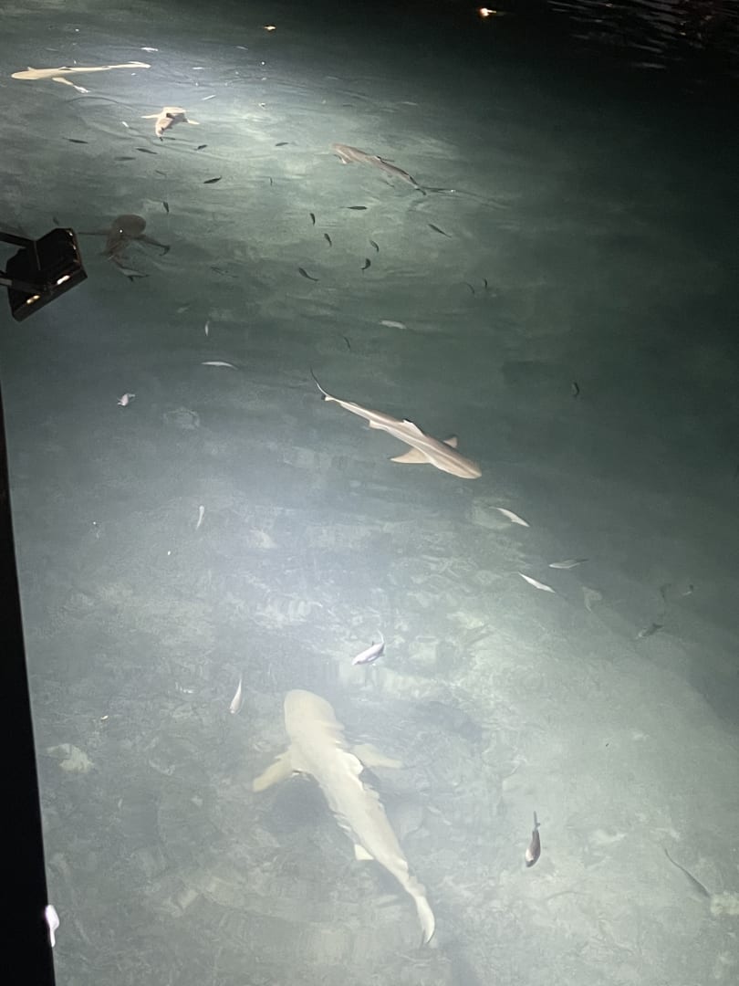Beim Abendessen Haie beobachten
