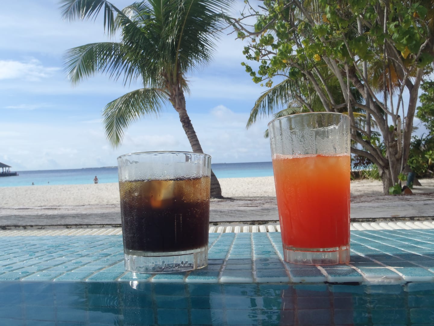 Im Pool Cocktail trinken mit Blick auf Meer