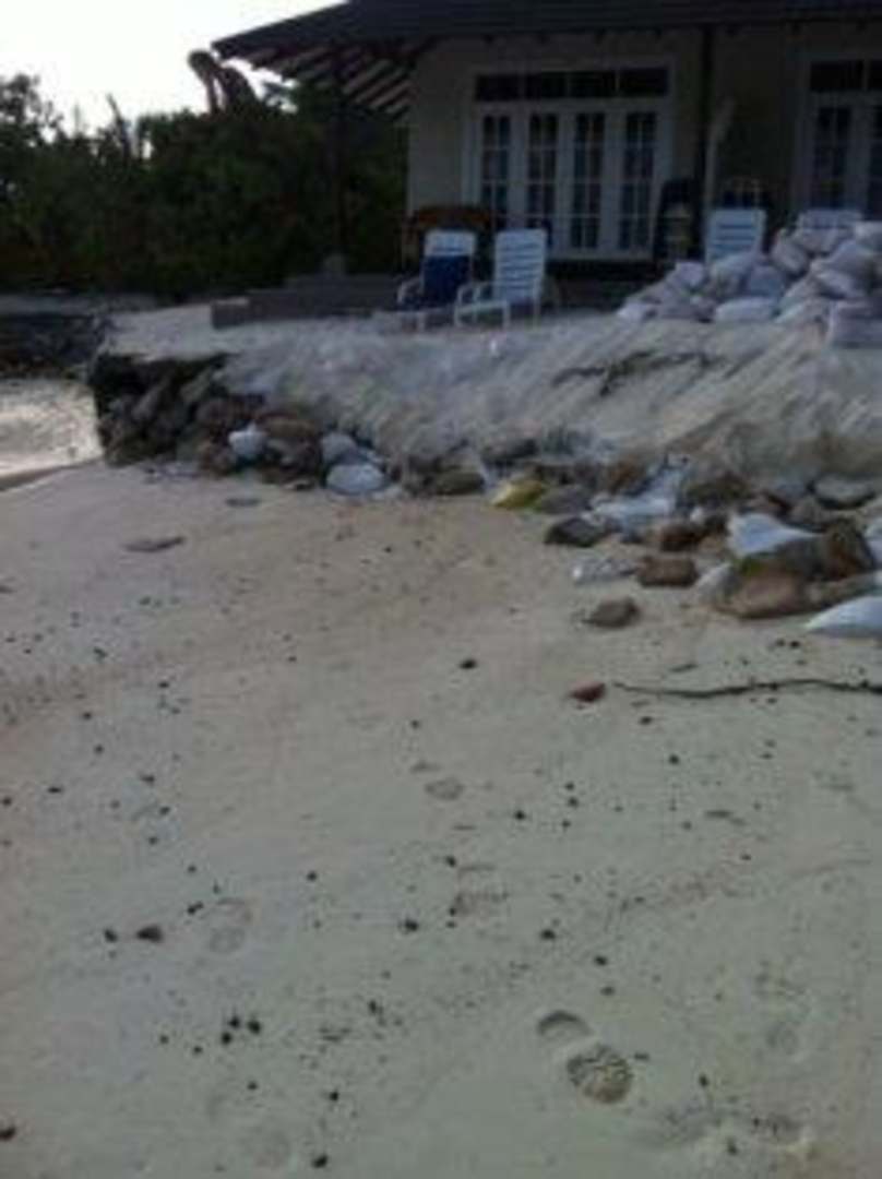 Abgespülter, unterspülter Strand, Sandsäcke