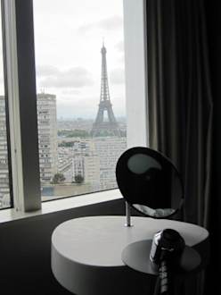 Hier kann man sich die Haare fönen und gleichzeitig den Eifelturm betrachten...