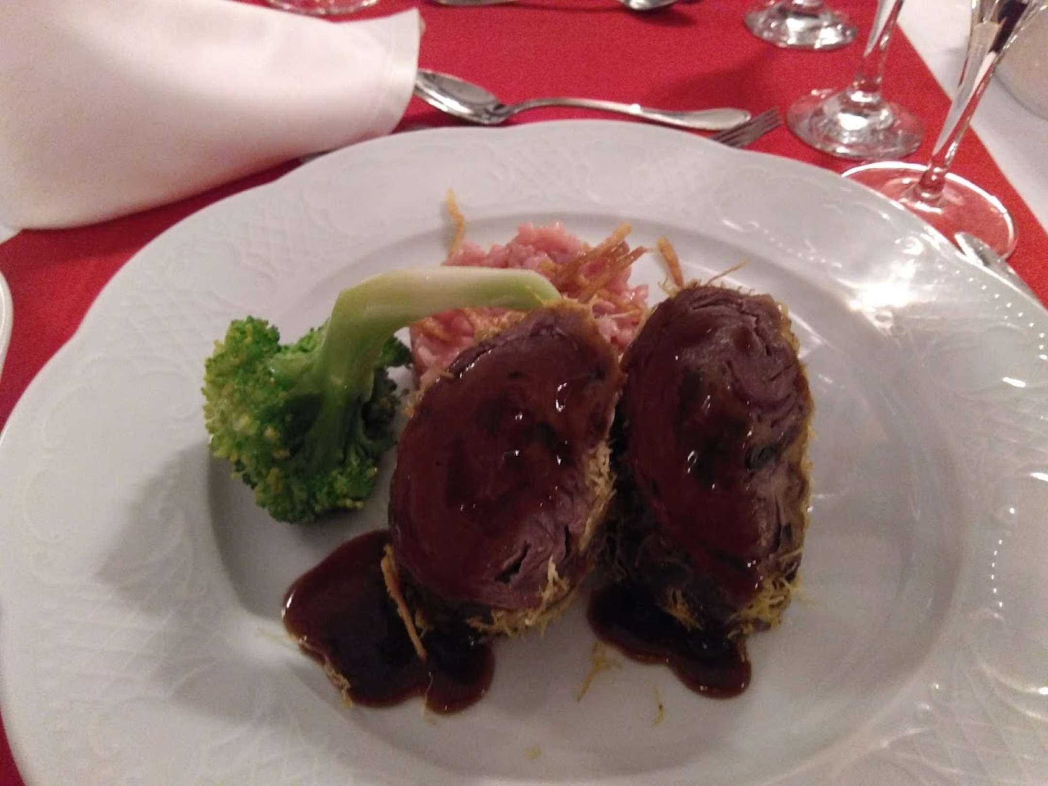 Stammgästeessen Hauptgericht gerollte Steaks
