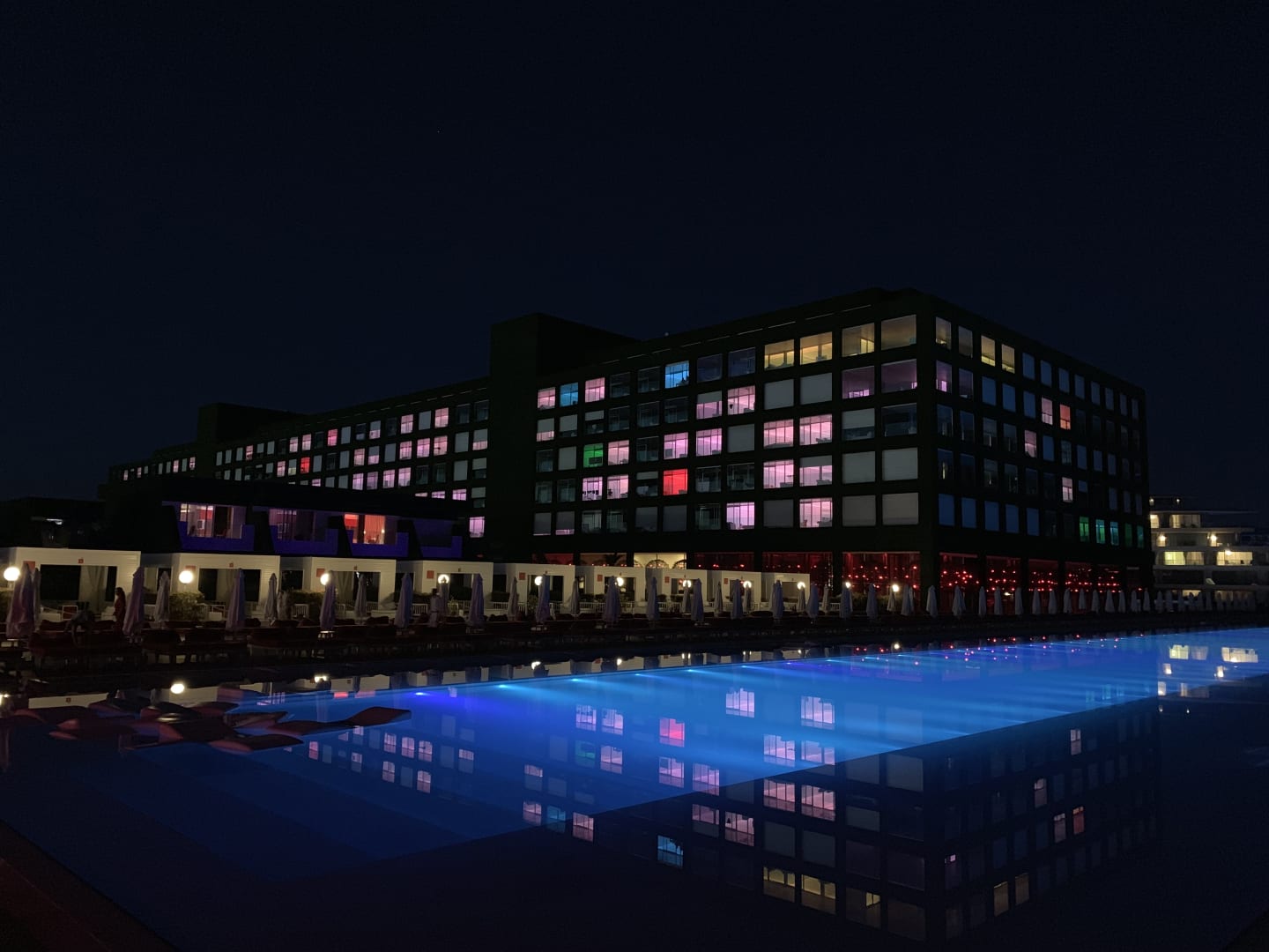 Adam & Eve bei Nacht mit dem größten Pool