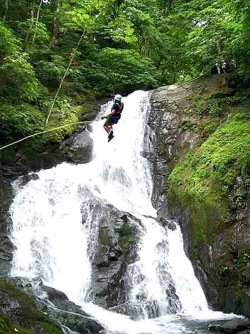 Abseilen übern Wasserfall auf der Canopy Tour