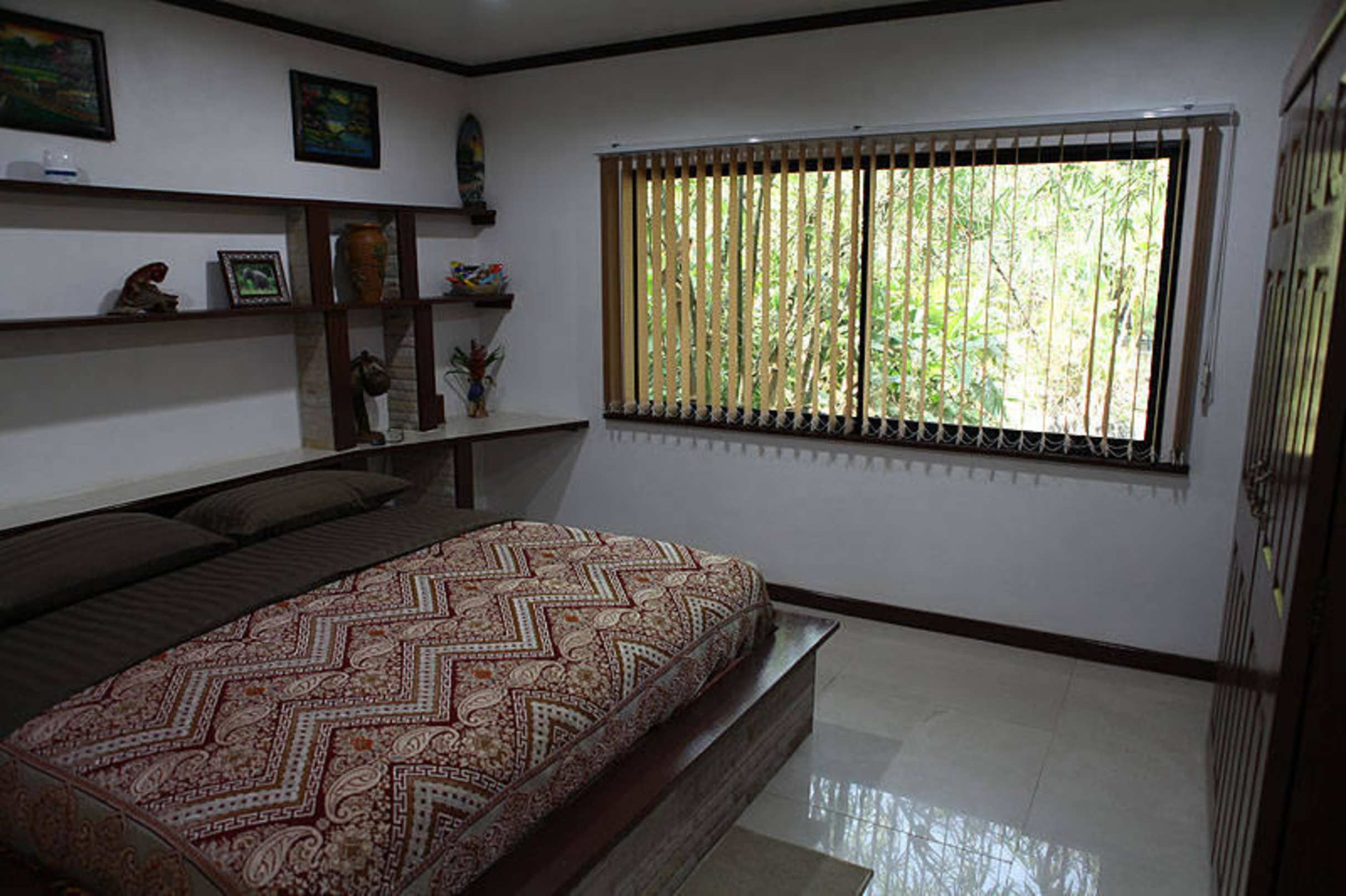 Schlafzimmer Bungalow Nr 4 mit Sicht ins Gruene