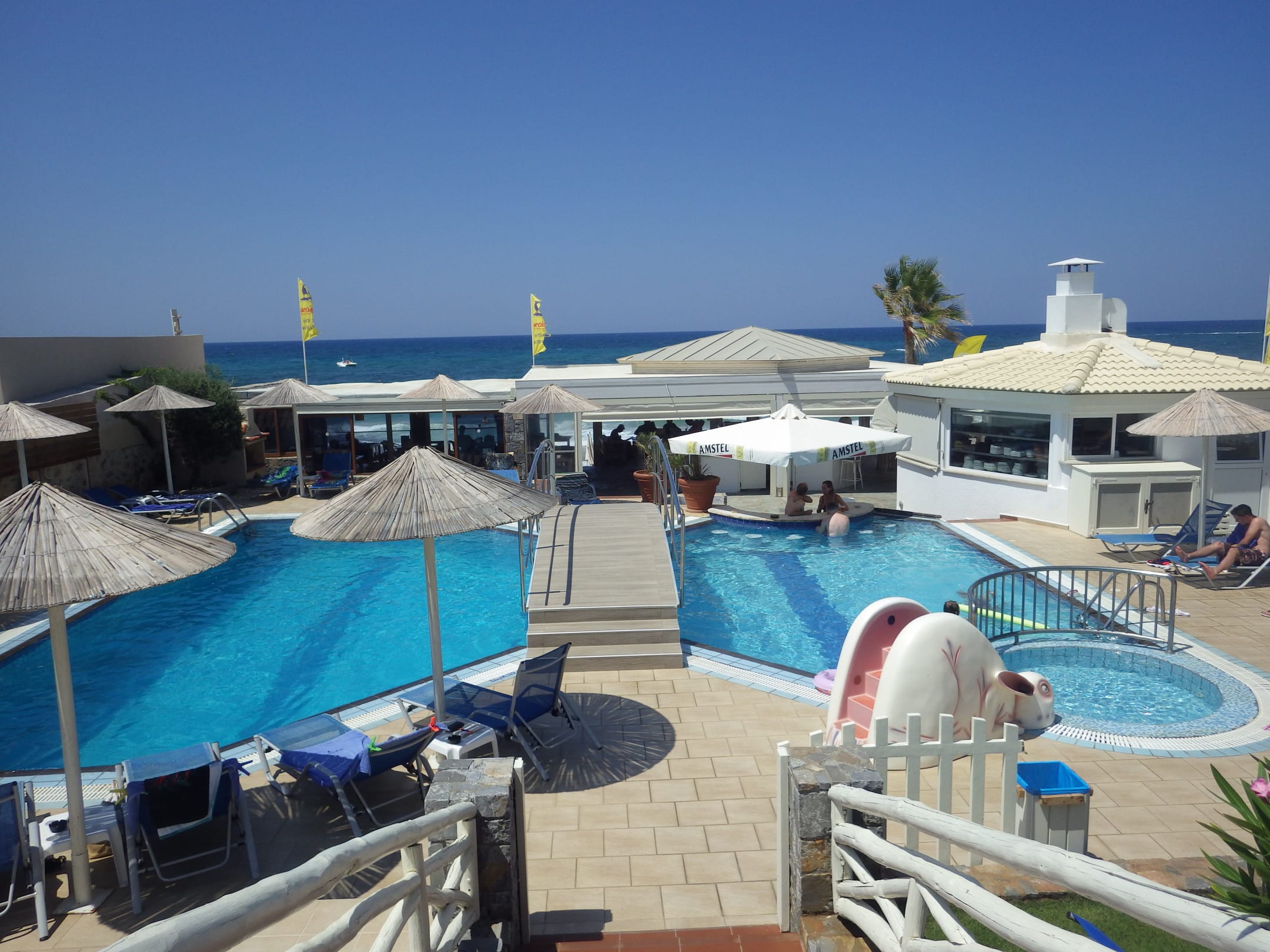 Pool mit Strandbar dahinter.