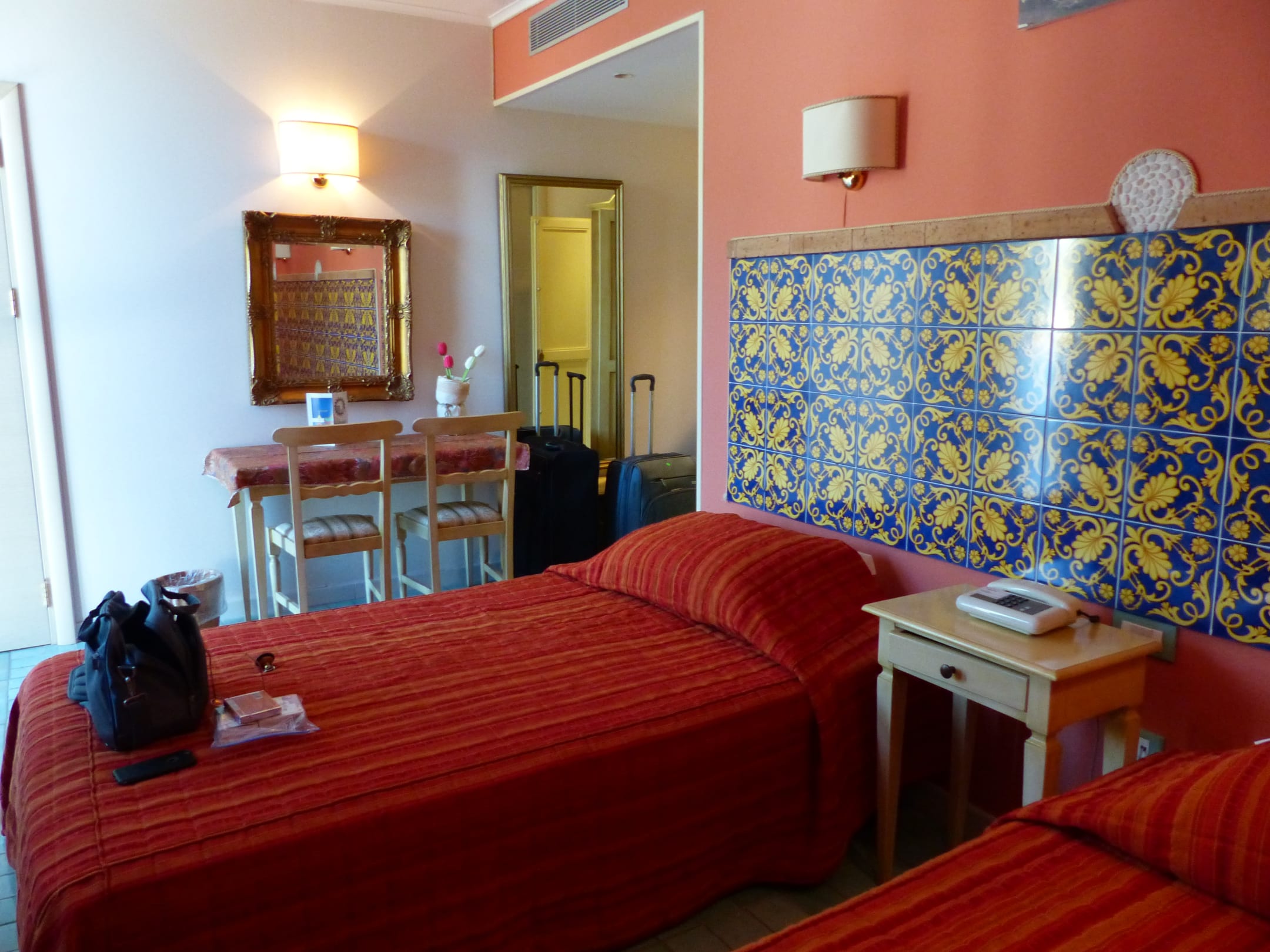 Doppelzimmer. Die Klimaanlage pustete nicht wie in Hotels sonst üblich direkt auf das Bett.