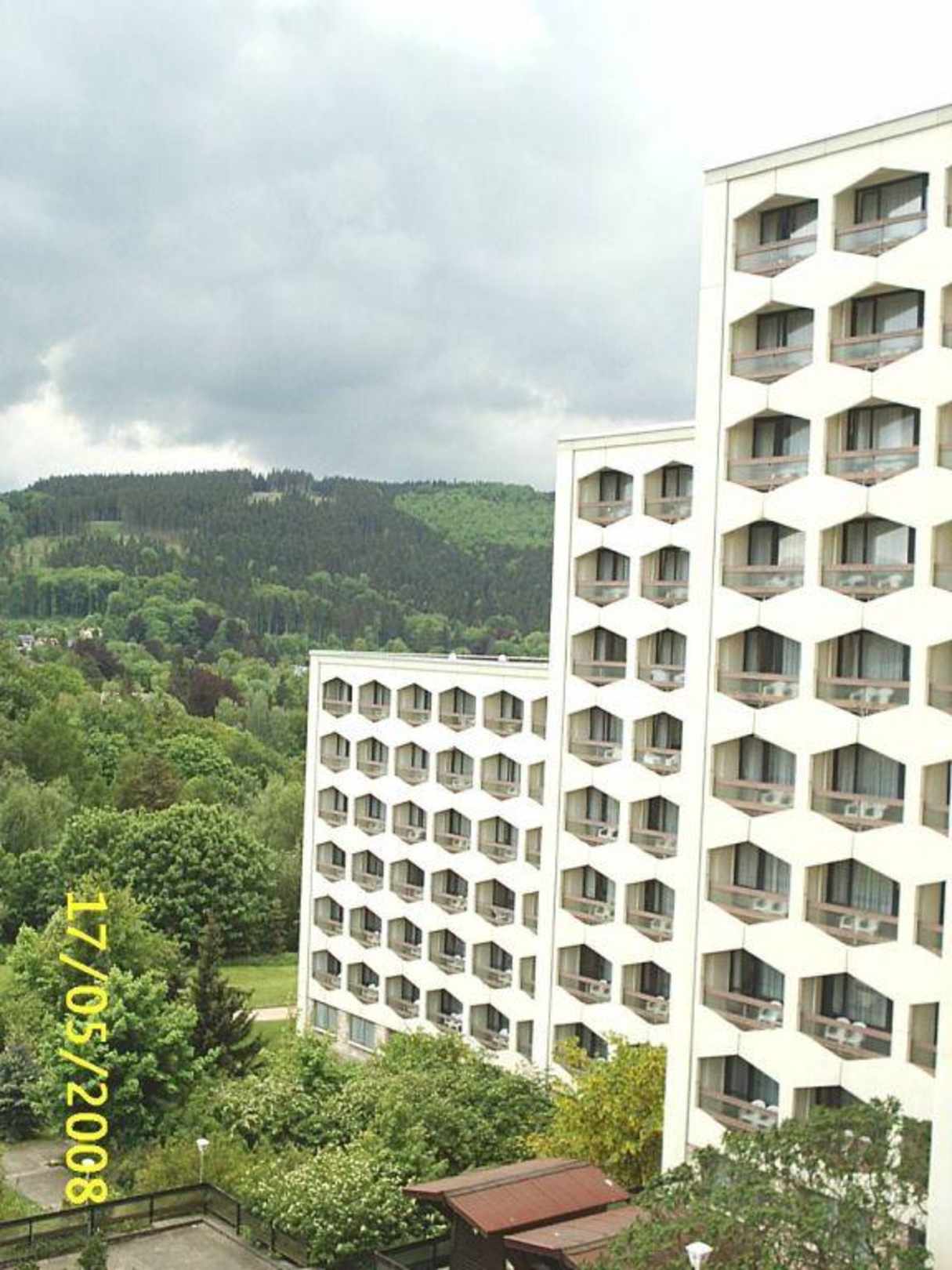 Blick vom Balkon des HotelsDer Blick richtet sich auf den Seitenteil des großen Hotels