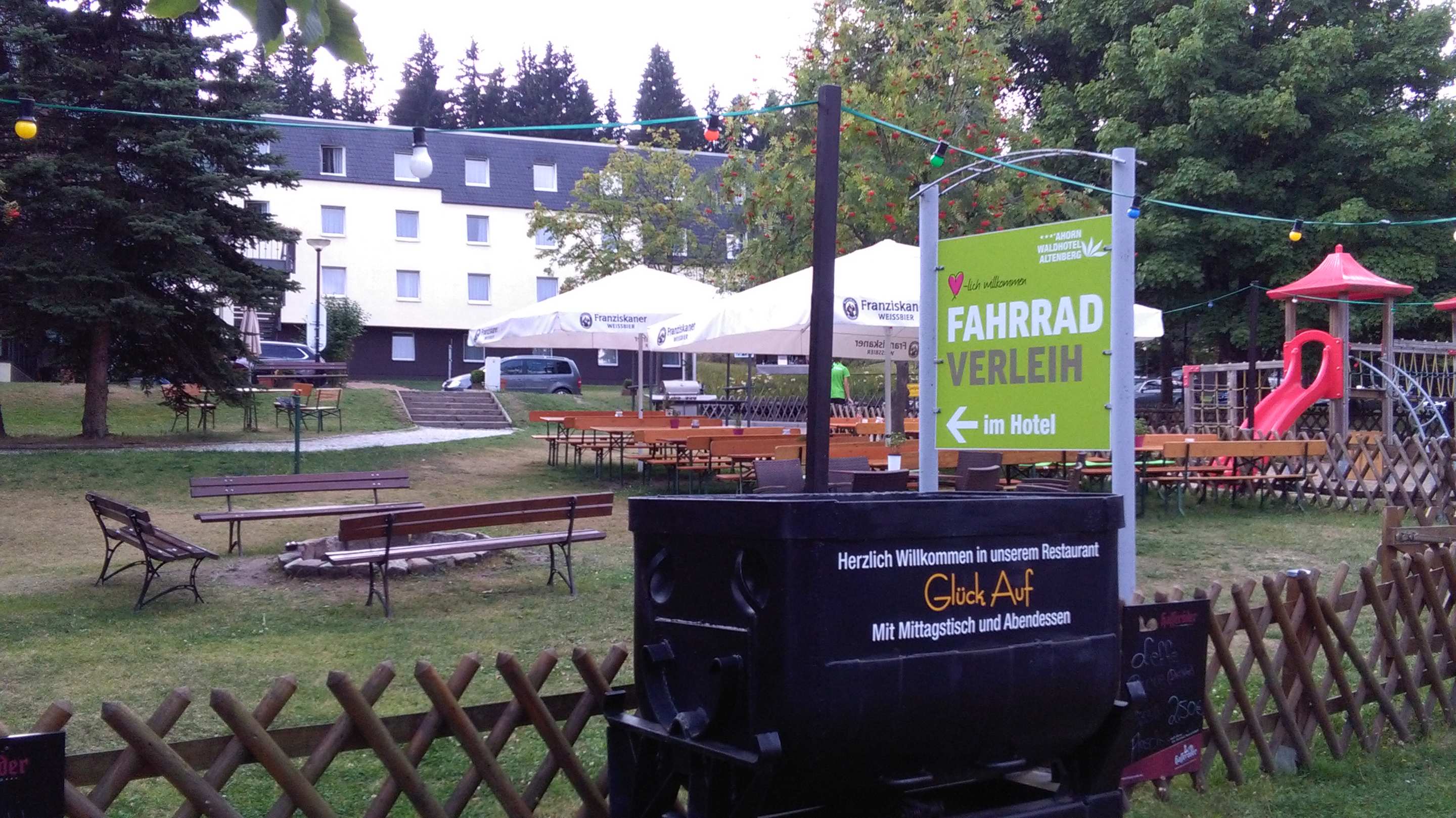 Biergarten: Blick von der Straße