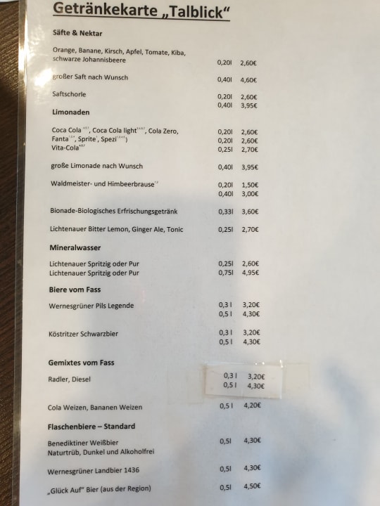 Getränkekarte bei HP Abendessen