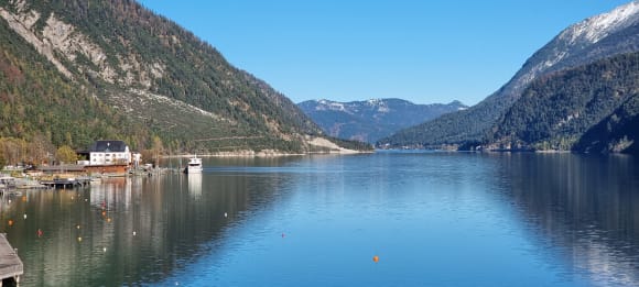 Blick von Süden über den Achensee, links das Travel Charme Fürstenhaus