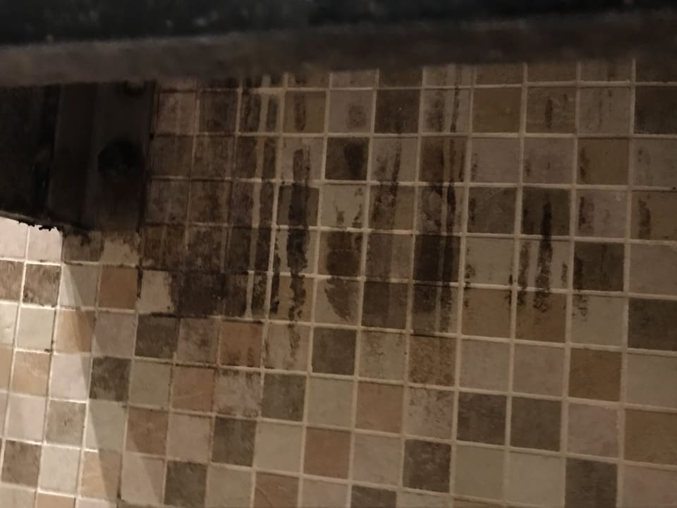 Blick unter die Sitzgelegenheit in der Dusche