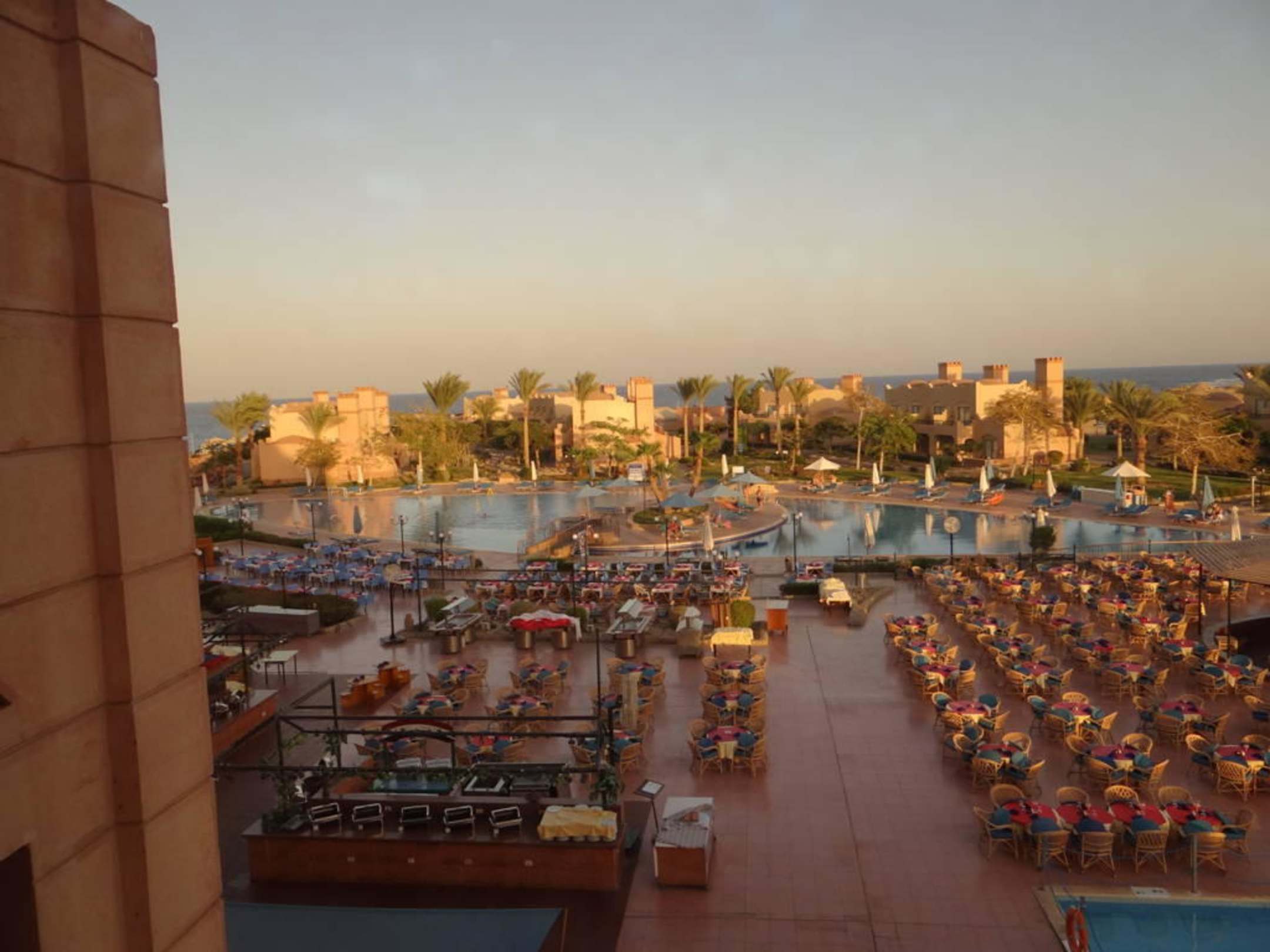 Überblick AnlageAussicht aus Lobby auf Restaurant, Pool und Bungalows