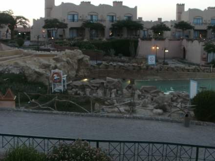 Blick von der Terrasse zum Wellenpool