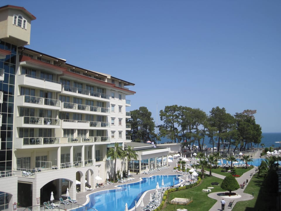 Blick aus der Lobbybar auf Poolbereich