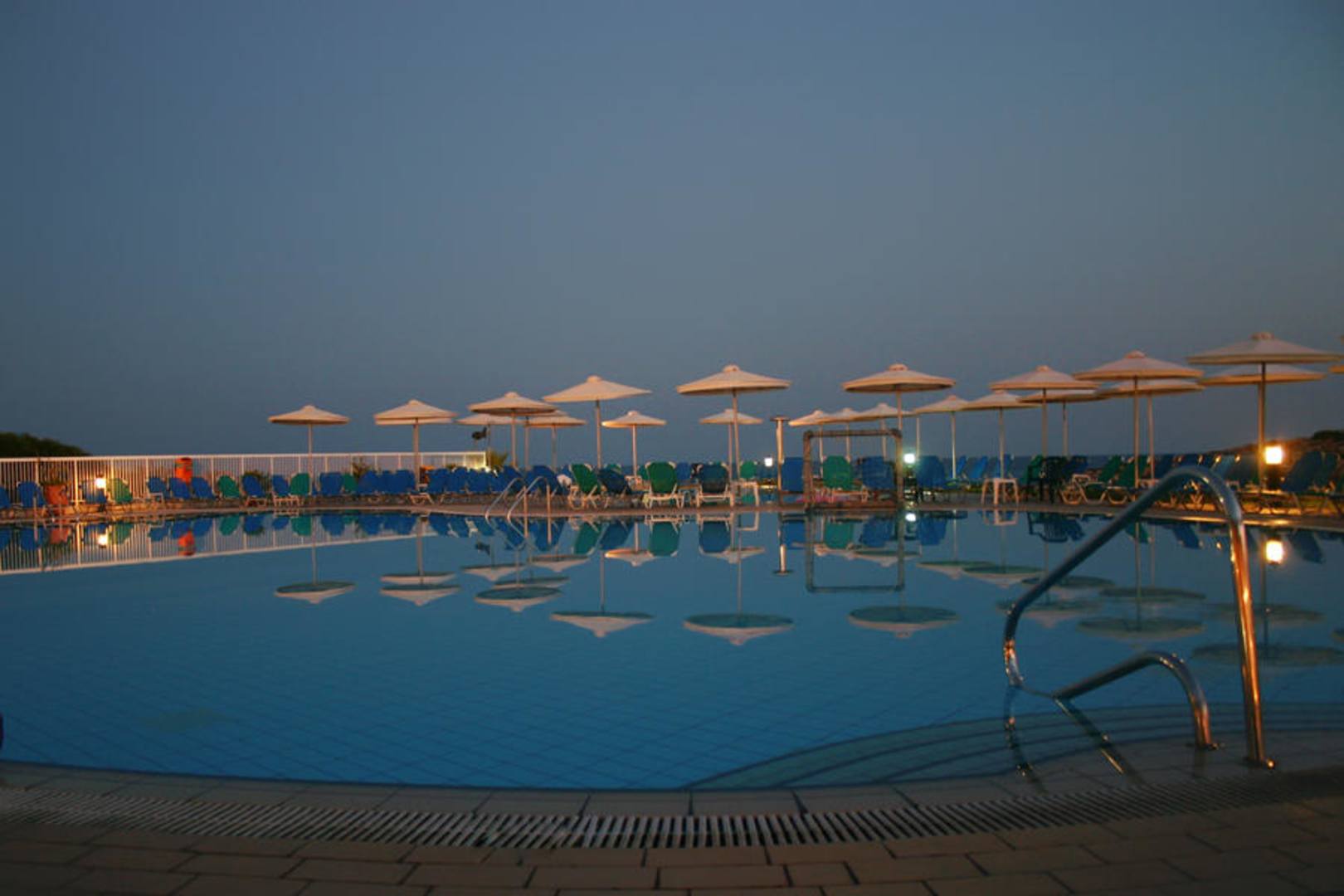 Ruhiges Pool nach dem Abendessen mit Blick Richtung Meer
