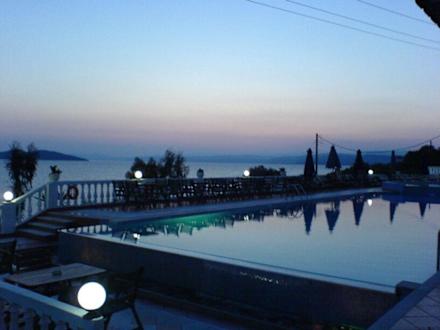 Abendlicher Meerblick über den Pool hinweg.