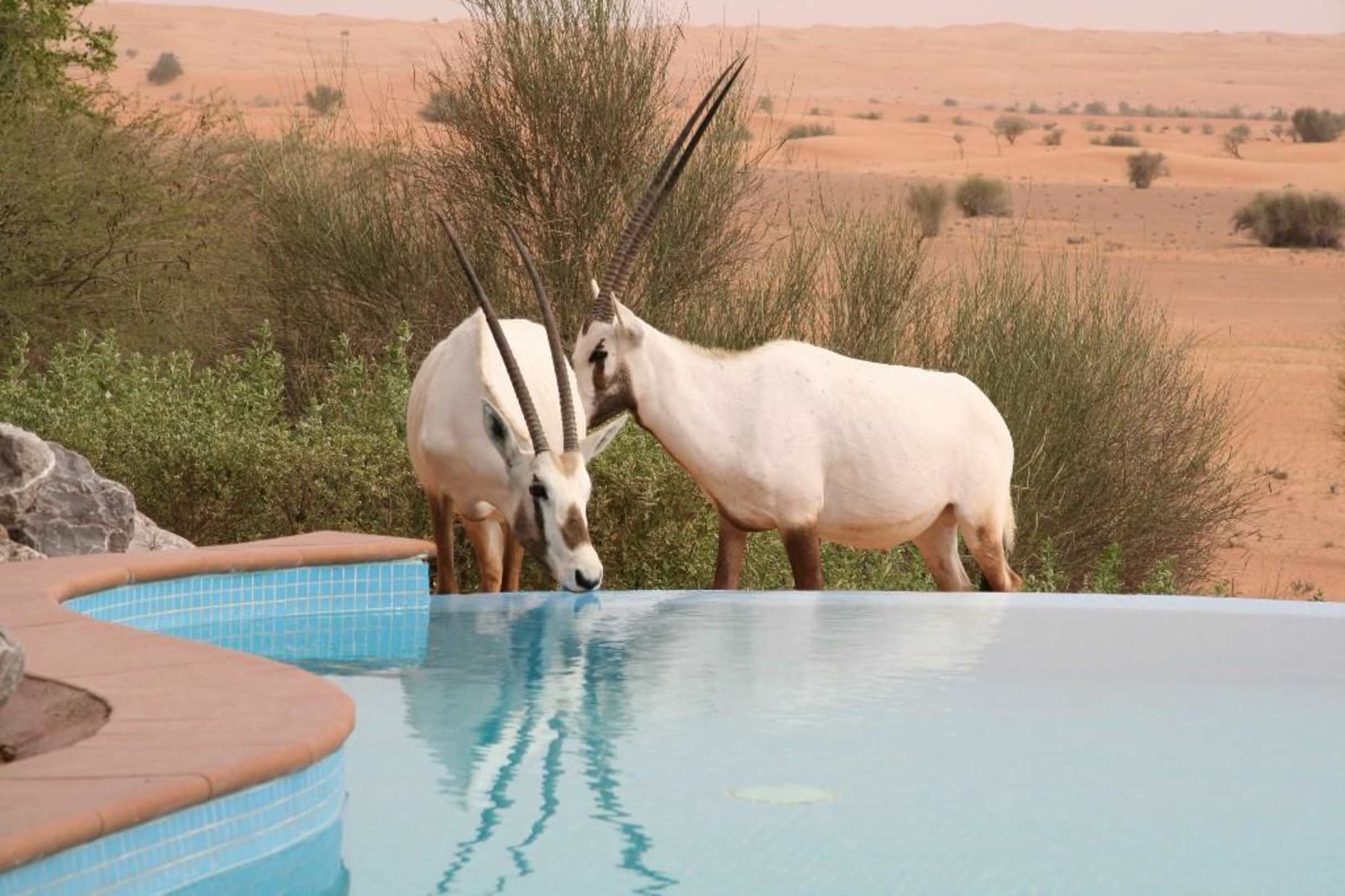 Al Maha, Oryxantilopen am Suitenpool