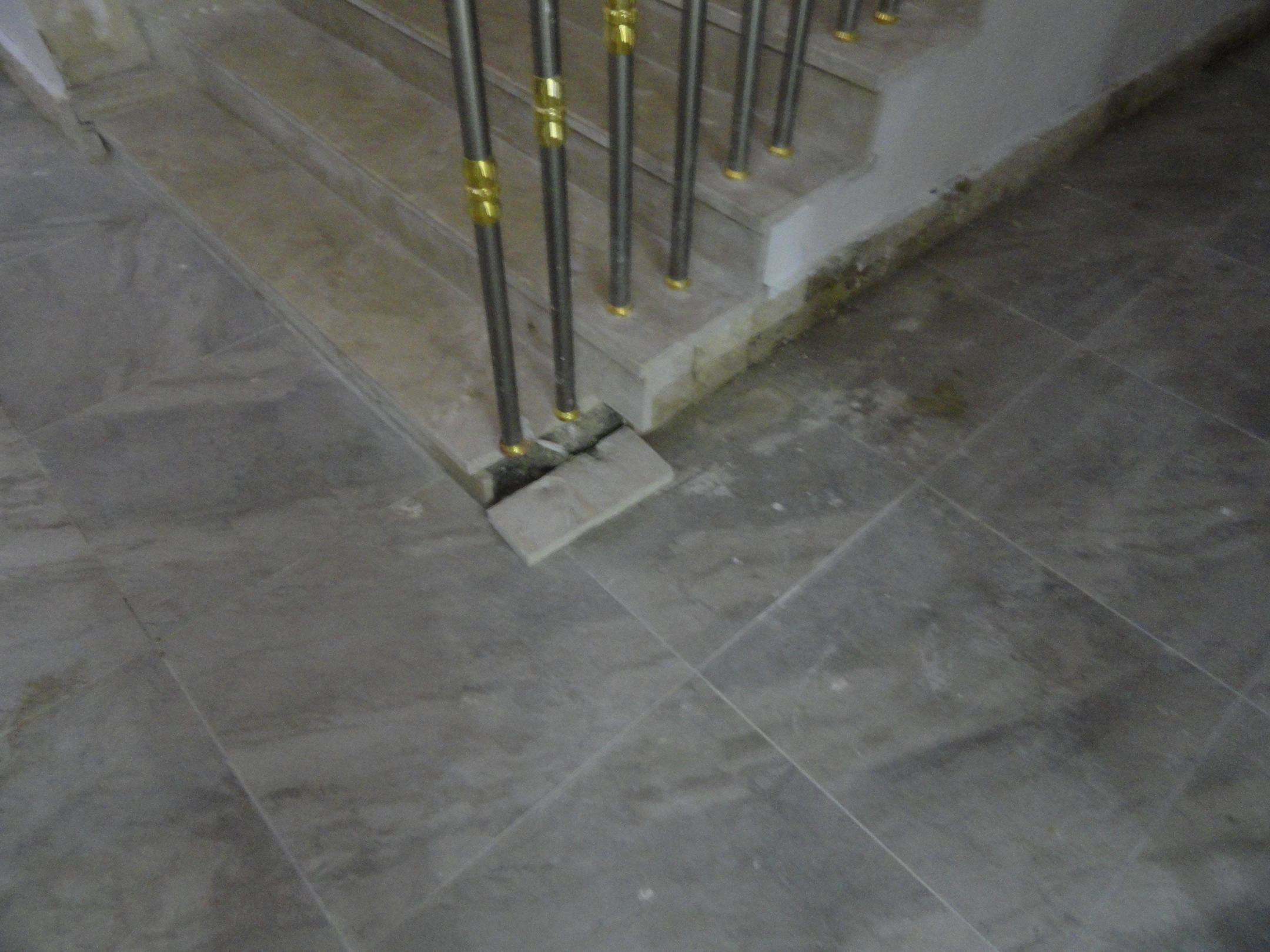 Defekte Fliesen im Aufgang von -2m zur Lobby